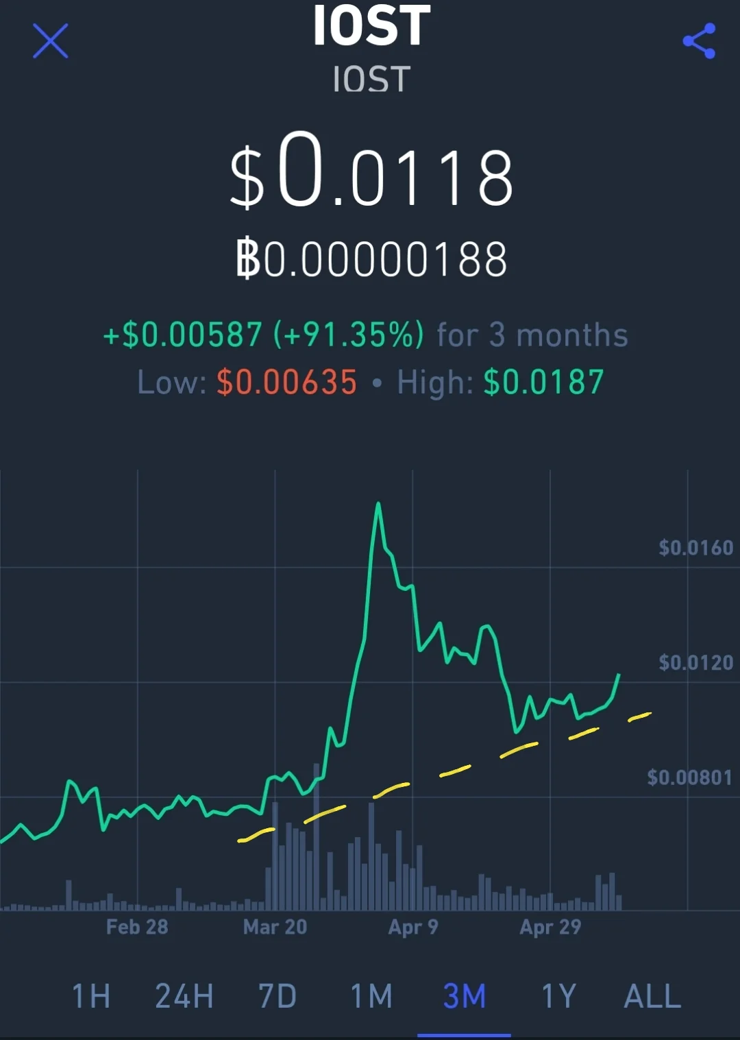 Do your due diligence, and as usual, this isn’t financial advice. Use your head. Don’t play with money you cannot afford to lose. Let me know what YOU think IOST will do in the next few days, if you have some technical analysis to share.